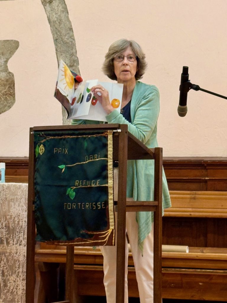 We met in the church at Crassier for an all-age Holy Communion service with a pot-luck lunch afterwards. The church was beautifully decorated with a butterfly theme which was the subject of the first talk.