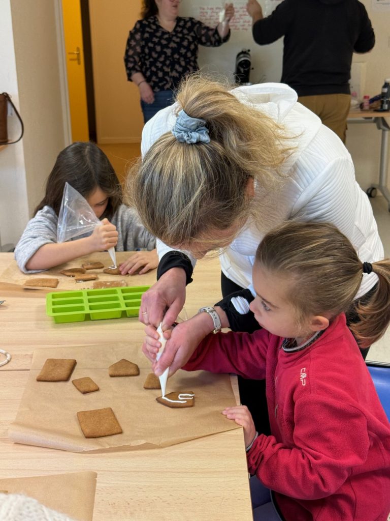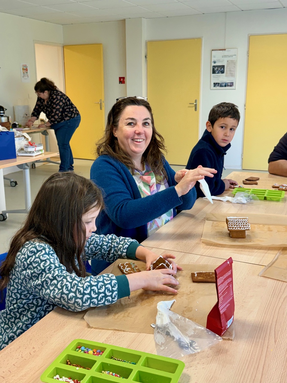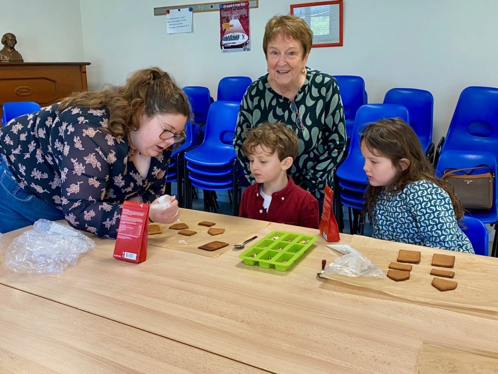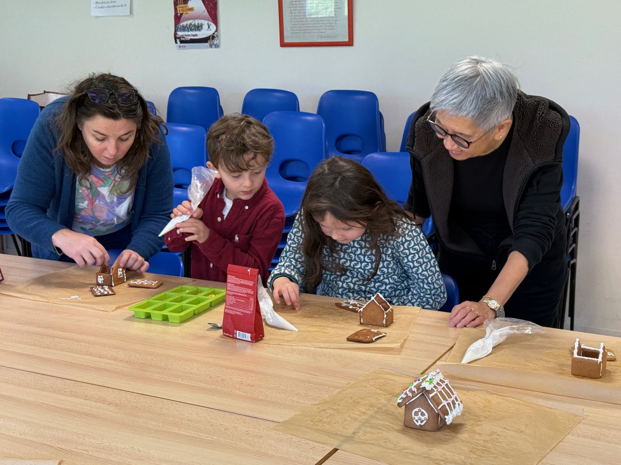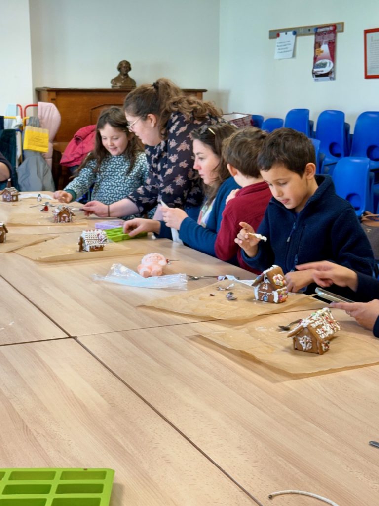 Saturday morning enthusiastic family members arrived at the Divonne Parish rooms to learn how to construct and decorate gingerbread houses.
