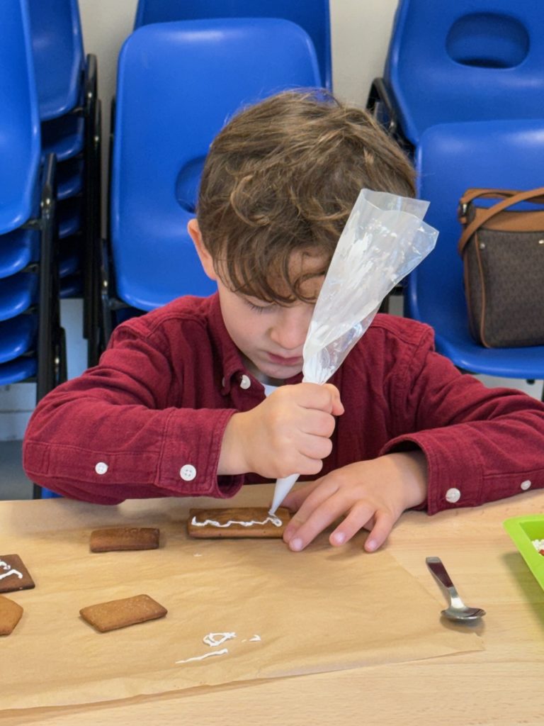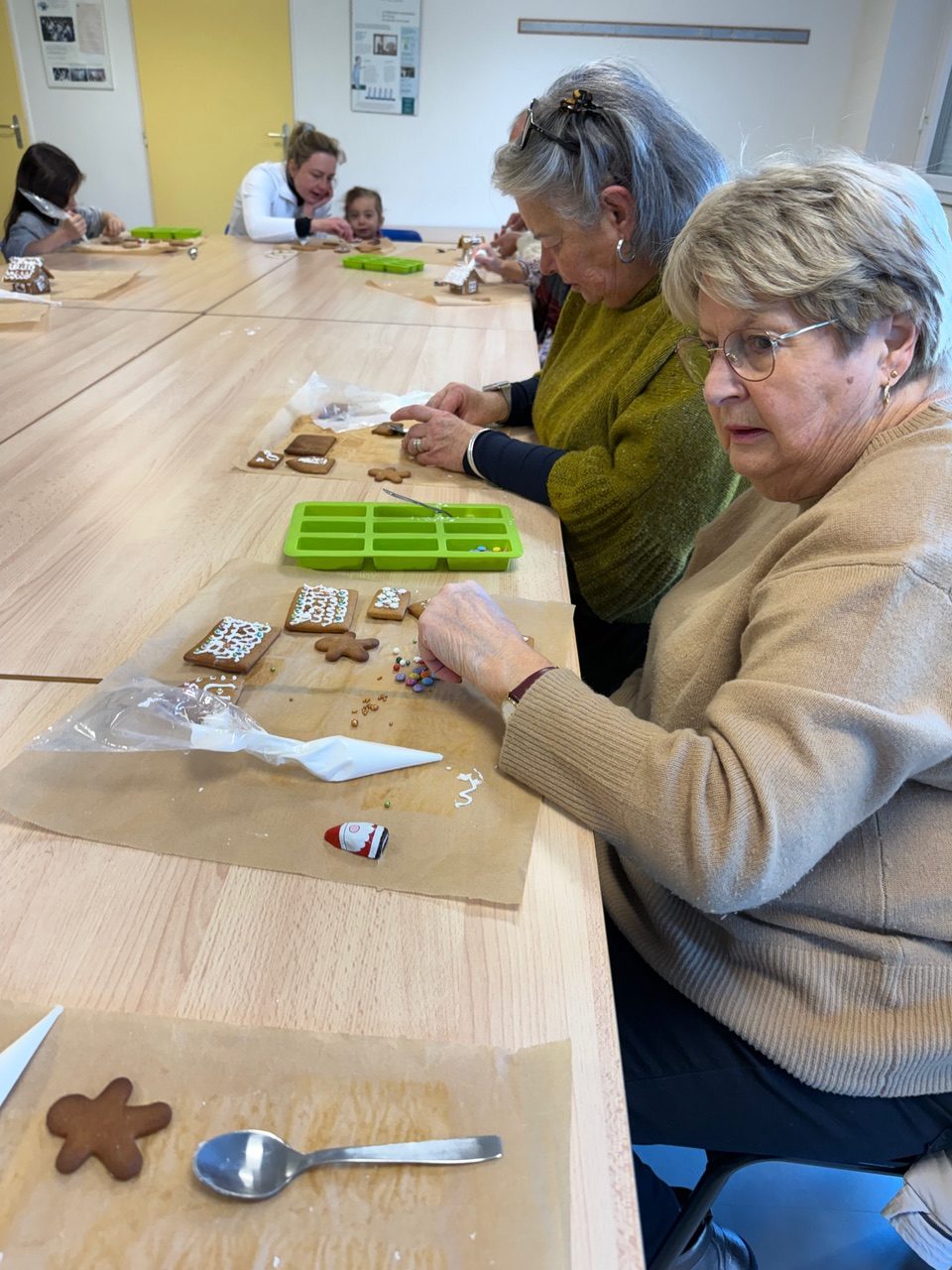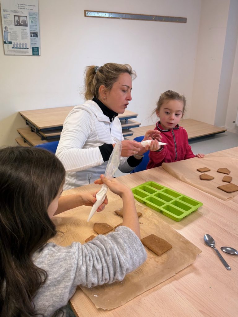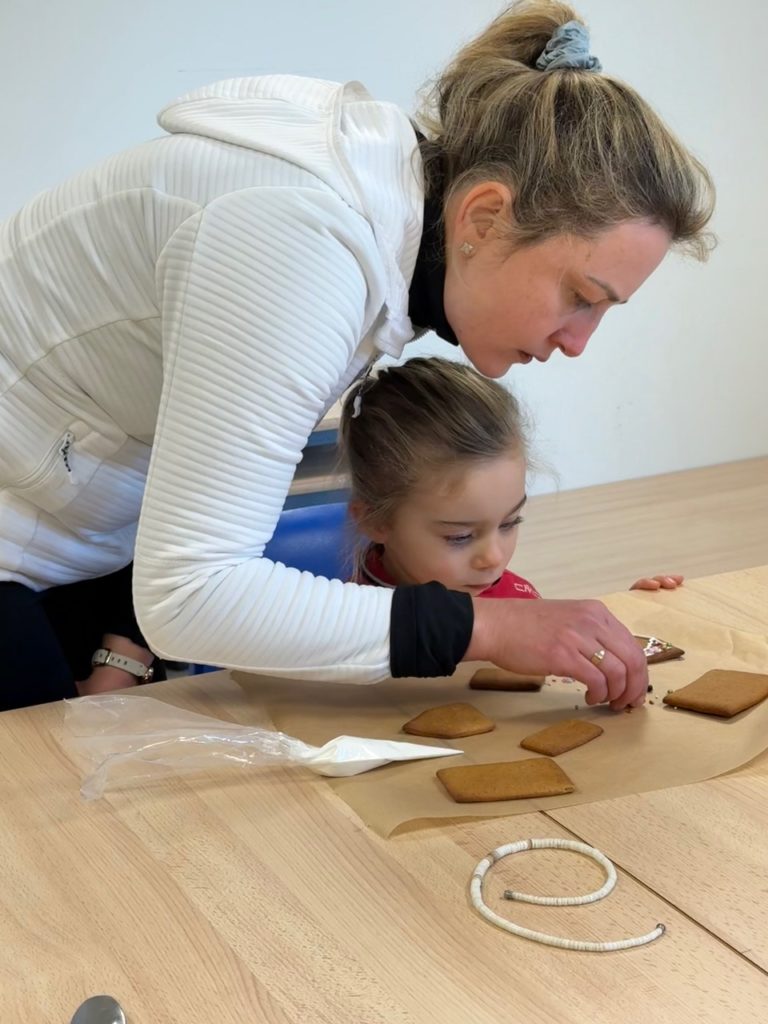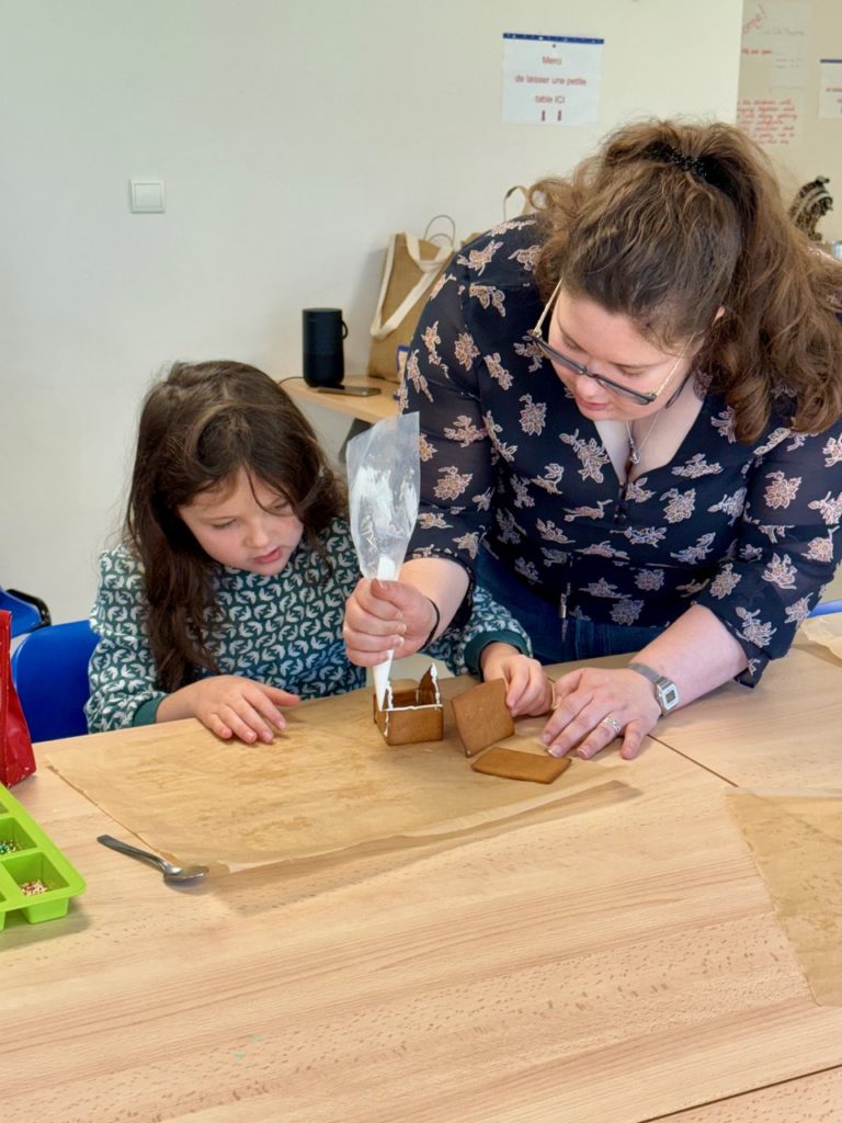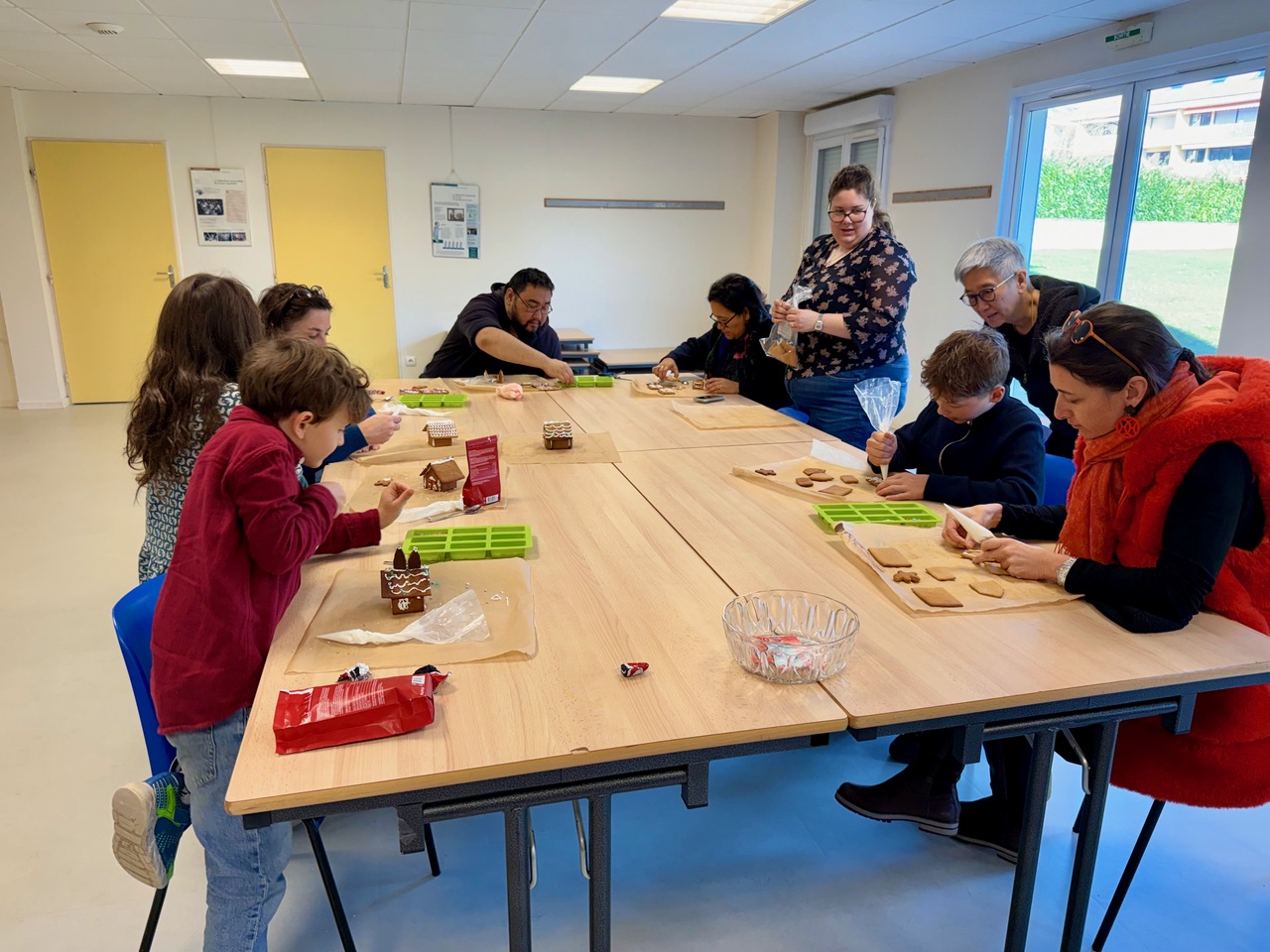 Saturday morning enthusiastic family members arrived at the Divonne Parish rooms to learn how to construct and decorate gingerbread houses.