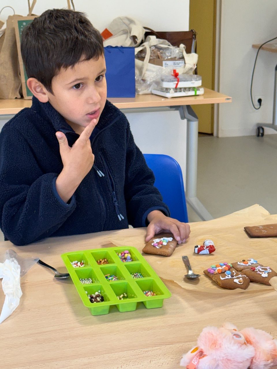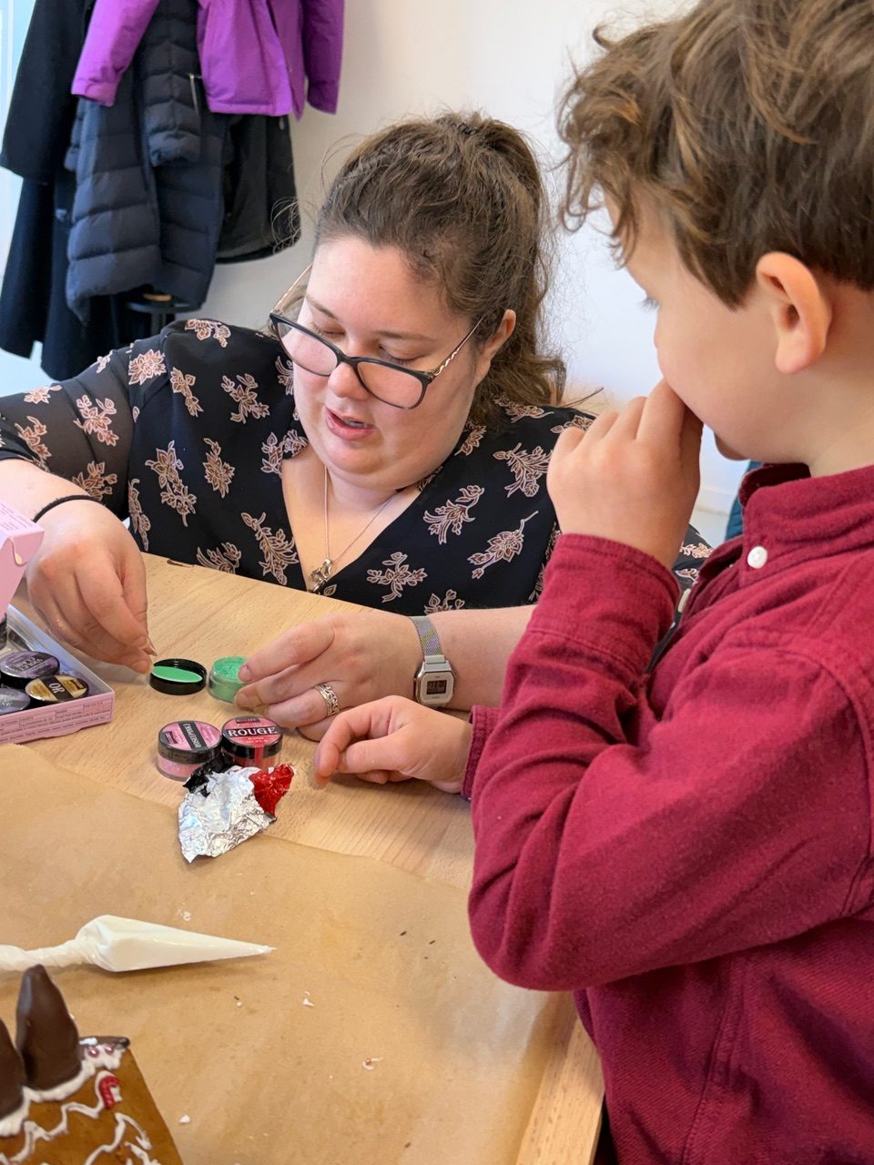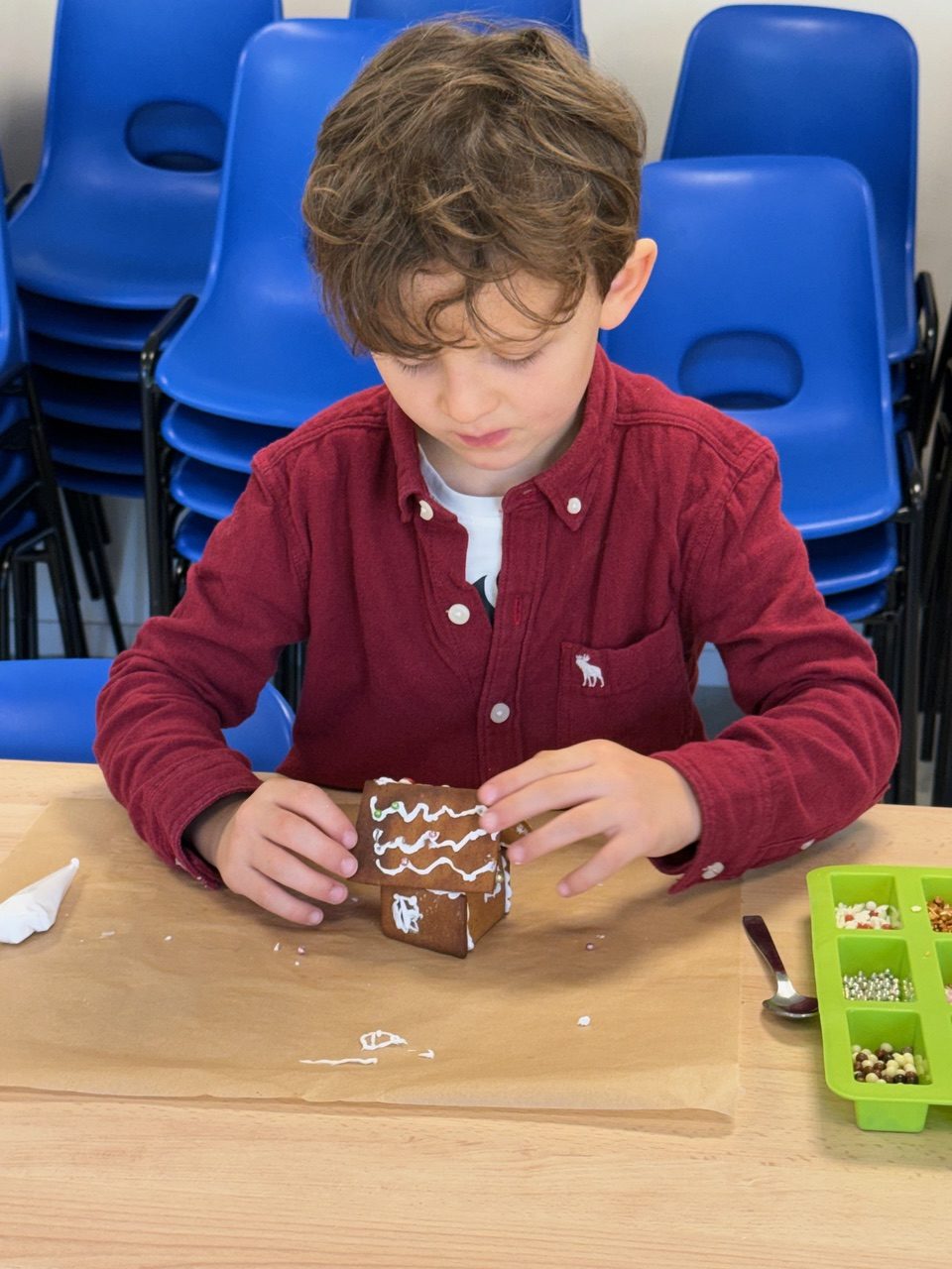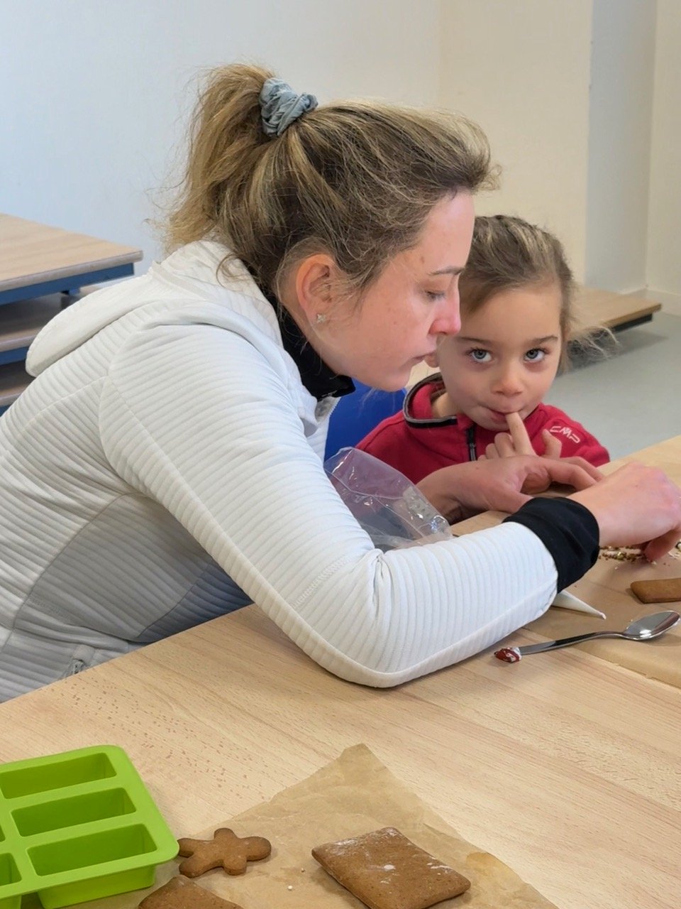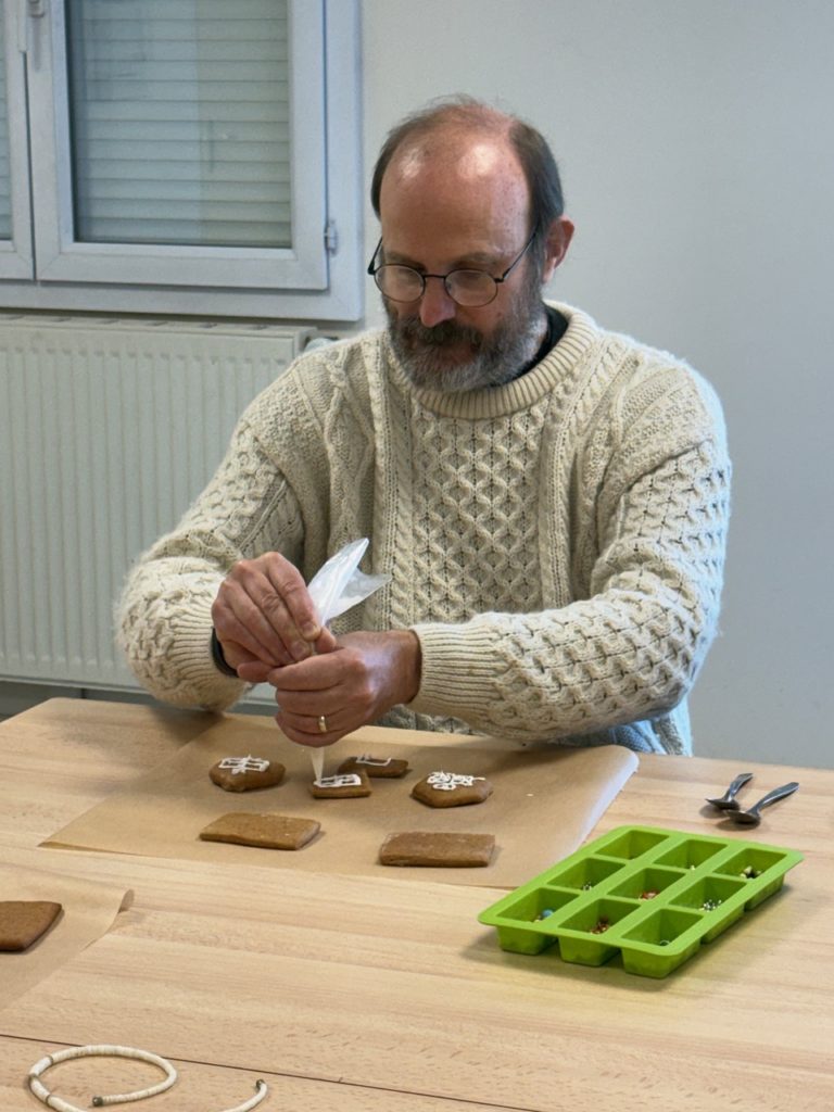 Saturday morning enthusiastic family members arrived at the Divonne Parish rooms to learn how to construct and decorate gingerbread houses.