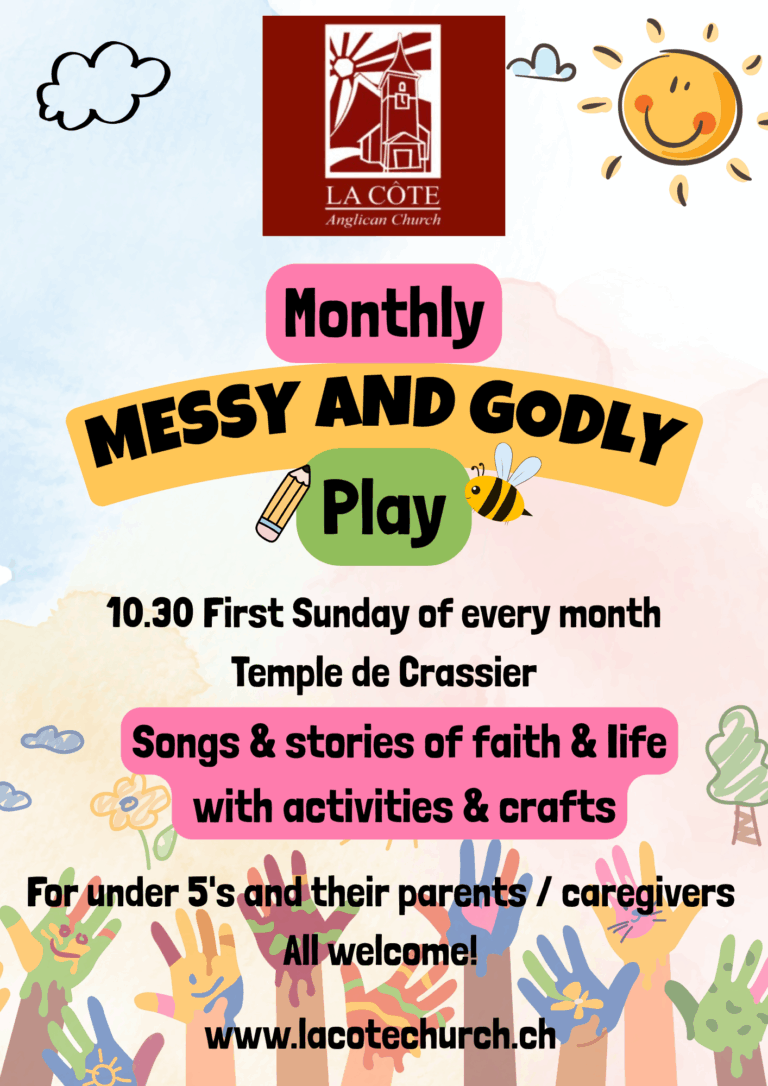 We are delighted to be able to offer a monthly, messy and godly play session for our children and for us (everyone welcome!) Do come along with our children and join in the fun!